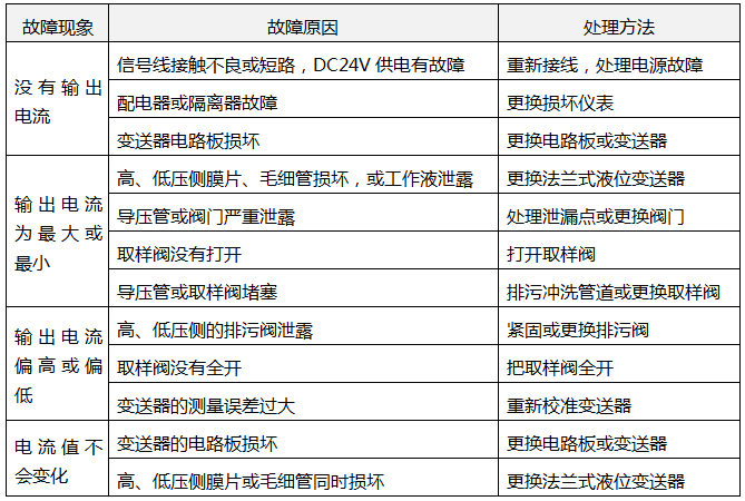 表1  差壓式液位變送器常見故障及處理方法
