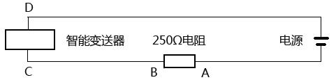 手持通訊器和智能變送器相連接時,可以連在任何位置(如圖所示),可以連在負載電阻R兩端,即AB點;也可以連在CD兩點;但不能連在AD兩點。因為電源是低阻抗的,內(nèi)阻很小,可以看做是短路,如果連在AD兩點,也即成了電源兩端,由于這兩端的電阻極小,實際上相當于一點,這樣手持通訊器和變送器的HART協(xié)議通訊不上就很自然。讀取或設(shè)定信息,所以要將連線的連接位置改過來。