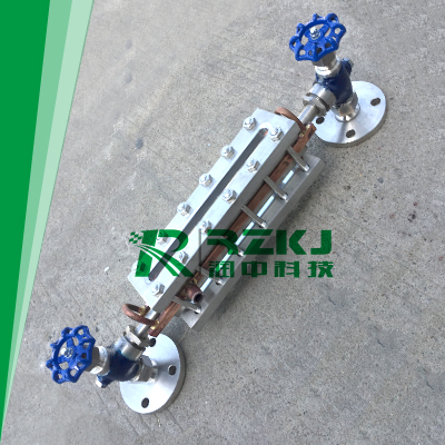 儀表的上下閥上裝有法蘭接頭,與容器連接構(gòu)聯(lián)通器,透過玻璃板直接指示容器布什的液位,“夾套型”設(shè)有加熱或冷卻裝置。該裝置加熱時(shí)可用蒸氣,冷卻時(shí)可用循環(huán)水,這樣可以調(diào)節(jié)流動(dòng)性能,夾套型接管尺寸ZG1/4內(nèi)螺紋。在上下閥內(nèi)裝有鋼球,當(dāng)玻璃板因意外事故破壞時(shí),鋼球在容器壓力作用下,自動(dòng)密封,防止容器內(nèi)的液體繼續(xù)外流。在儀表的上端針形閥裝有阻塞螺釘,可供放氣之用,下端針形閥也裝有阻塞螺釘??晒┓趴?、取樣、排污、清洗。